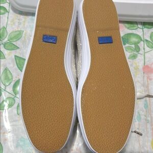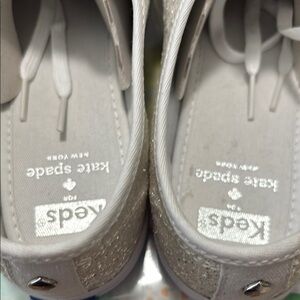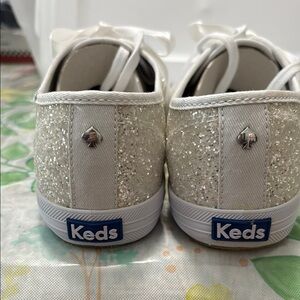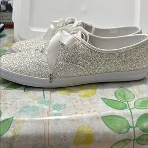 Step out in style with these dazzling Kate Spade sneakers. Featuring a sparkling silver design with elegant white accents, these shoes are perfect for adding a touch of glamour to any outfit.