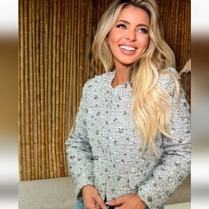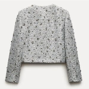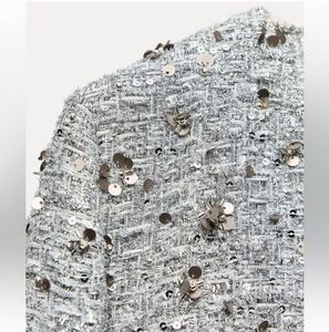 Zara tweed textured sequined blazer SILVER GRAY size S