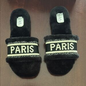 Nicole Miller Paris Flat Slide Slippers for Women, Chic Faux Fur Lined Sandals - Fashionable Women's Slippers Perfect for Indoor & Outdoor Use - Stylish Gifts for Women
