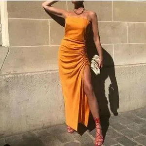 #orange#yellow#slit#split#maxi#cut#ruched