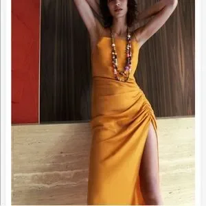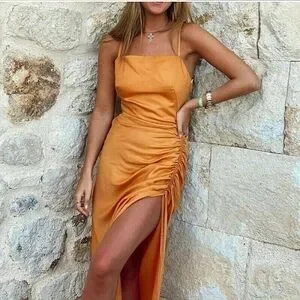 ZARA LONG SLIT DRESS ORANGE RUCHED SIZE XS