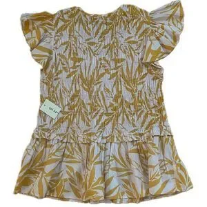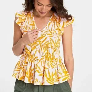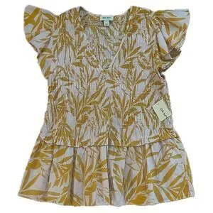 On 34th Cap Sleeve Tropical Peplum Top Pink Yellow Size Large for Macy's
