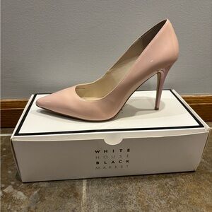 Elevate your style with these chic pink stiletto heels from White House Black Market. Crafted in glossy patent leather, they feature a classic pointed-toe design and a sleek silhouette. Perfect for formal occasions, these heels offer a timeless elegance.