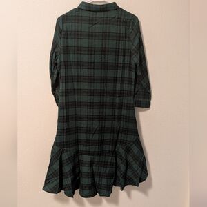 This Davi & Dani dress showcases a chic ruffled design with a dress shirt collar and cuffed 3/4 sleeves. The green and black color scheme adds a touch of elegance, making it ideal for both casual outings and work environments.