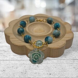 Handmade Elegant Blue and Gold Bracelet with Floral Charm