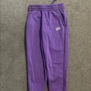Soft and cozy Nike sweatpants for kids. Perfect for play and relaxation. Features a vibrant purple hue. No stains or holes. My daughter out grew these very fast!