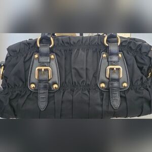 PRADA BLACK NYLON GAUFRE GATHERED TESSUTO ZIPPED SHOULDER BAG 2 Ways