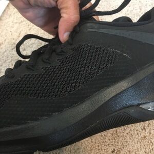 Men’s size 7.5 Nike Air Max Alpha Trainer black like new. Bought for my son but too small. My daughter wore them once for indoor basketball but they were too big. Small rocks noted in sole otherwise new excellent condition
