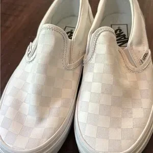 Vans slip-ons with a subtle white checkered design. Ideal for everyday style. Never worn! Like new!