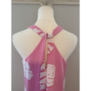 Tori Richard Pink Monstera Leaf Halter Dress Resort Wear Size M