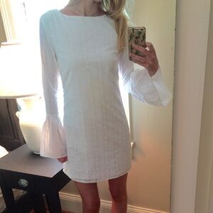 Elegant long sleeve dress. Features a classic white color. Perfect for any occasion.
