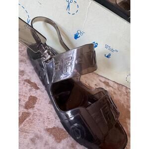 Off-White c/o Virgil Abloh Jelly Slingback Sandals. These sandals come in a grey color and have a transparent texture. 100% polyvinyl chloride US size 6.5 / EU 37