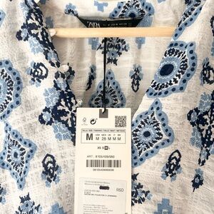 Stay cool and stylish in this brand new ZARA blouse, featuring a breezy boho print in navy blue and white. Lightweight and effortlessly chic — the perfect top for summer!