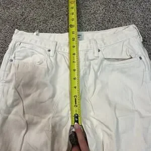 Low rise style. Zip fly with button closure. Five-pocket style. Belt loops.