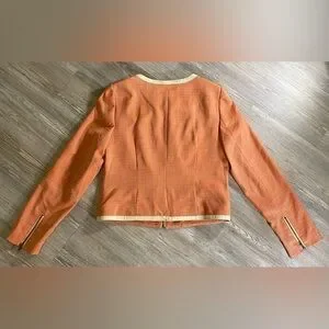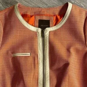 NWT - The Limited Orange & Cream Leather Trim Blazer, Front Functional Zipper & Pockets