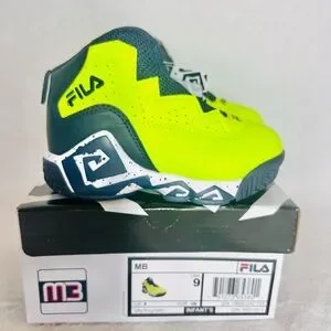 Stylish Fila sneakers with a bold yellow and dark blue design. Perfect for active kids.