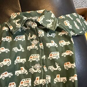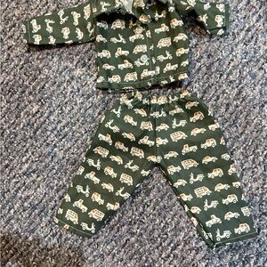 Adorable green pajama set featuring a playful car print. Perfect for cozy nights.