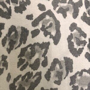 Comfy zip front hoodie in a subtle cheetah print in shades of grey. Measures 23" pit to pit, 27" long and 25" sleeve. Sleeve cuff and bottom hem are ribbed and the front pockets are generously sized. There is some small and minor pilling but hardly noticeable because of the print. I've priced it accordingly.