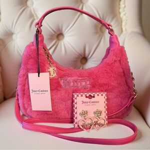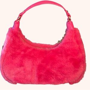• This Juicy Couture Faux Fur Crossbody Bag in a Vibrant Pink is a stylish accessory for any occasion.