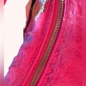 Juicy Couture NWT Faux Fur Pink Flash Crossbody Bag & Heart Earrings (P139)