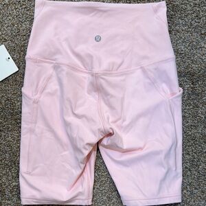 Experience the perfect blend of style and performance with these pink bike shorts from Lululemon Athletica. Designed with a high waistband and crafted from a smooth, stretchy fabric, these shorts offer a form-fitting, compression-style fit ideal for cycling or any active pursuit. The minimalist design ensures a sleek, modern look that pairs effortlessly with your athletic wardrobe.