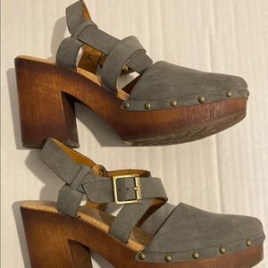 Step into comfort with Kork-Ease gray mules, featuring a soft suede-like upper and a natural cork footbed. These shoes offer a secure fit with their multiple strap design, perfect for casual outings. Enjoy a chic and airy feel while ensuring your feet stay comfortable all day. Beautiful!
