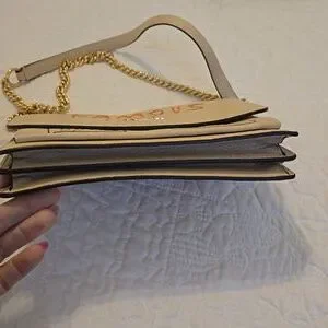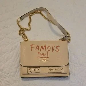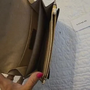 Elevate your style with this elegant Coach shoulder bag. Featuring a chic cream color and a luxurious gold chain, this bag is perfect for any occasion. The iconic Coach branding adds a touch of sophistication. Comes from smoke free home.
