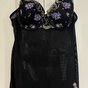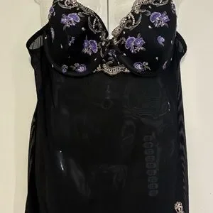 Delicates Black and Purple Floral Lingerie Set
