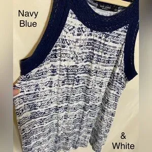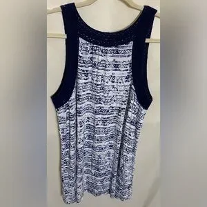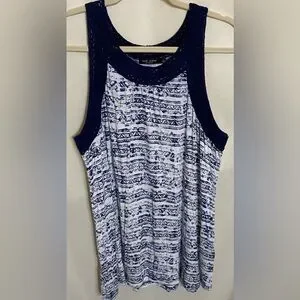 Max Jeans Blue & White Crocheted Trim Tank Top