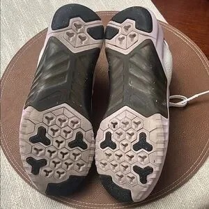 Nike sneakers in white with pastel green and pink details. Comfortable fit with signature logo.