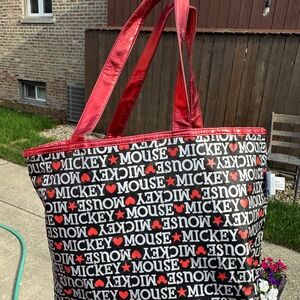 Disney Parks Red Reversible Large Shopping Tote Bag Metallic Red/Mickey Print