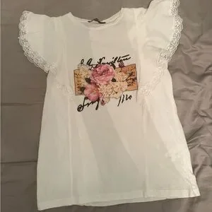 NWOT Vintage Rare Graphic Roses Lace Flutter Tee