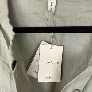 Grae Cove Lagenlook Sage Green Linen Midi Dress, M