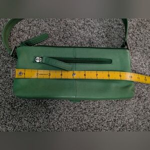 Chic green leather shoulder bag by HOBO. Features a stylish buckle detail. Perfect for everyday use.