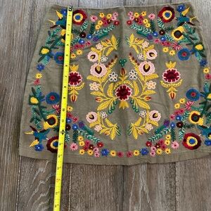 This vibrant mini pencil skirt by Umgee features a striking combination of yellow and red embellishments, perfect for casual or resort wear. The intricate design includes floral and geometric patterns, creating a festive and handcrafted appearance. Its embellished style adds a touch of elegance to any casual outing.
