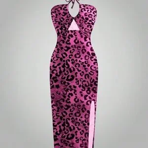 Turn heads in this vibrant pink maxi dress from SHEIN, featuring a chic halter neckline and a daring side slit. The sleeveless design and bodycon fit make it perfect for a night out, ensuring you make a statement wherever you go.