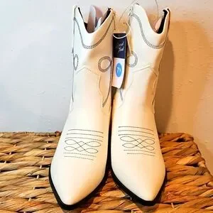 Step out in style with these chic white western boots. Perfect for any occasion, these boots offer both comfort and elegance.