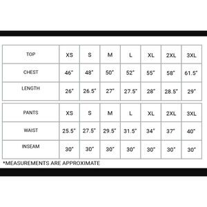 Includes top and pants