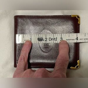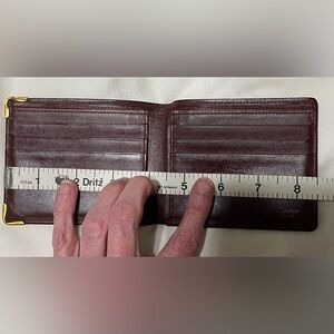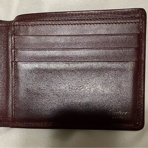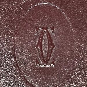 Cartier Authentic Vintage Maroon Leather Compact Wallet with Embossed Logo