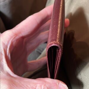 Condition is **vintage/preowned**. It is very clean, but there may be slight wear/marks on the leather. There is some slight rubbing on the crease of this wallet. The pictures are part of the description, so please look at each image carefully before you purchase. Sale is final.
