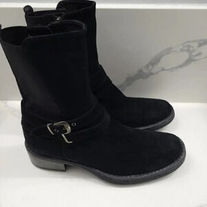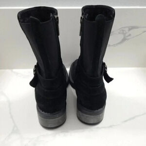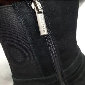 Aquatalia Suede Above Ankle Lug Sole Style Black Boots. Super gorgeous! Size 7.5. Does not come with original box. In great used condition with minor marks/scuffs on the suede. Sole is distressed style and grayish in color. #bikercoreTags: vintage boho christmas winter fall cute petite revovle free people nordstrom asos h&m forever 21 holiday seasonal urban outfitters warm cozy