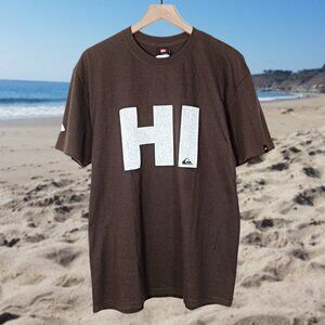 Quicksilver Mens Hawaii T-Shirt Coffee Brown Cotton Short Sleeve Aloha Size L