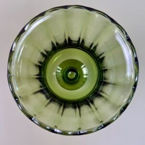 Timeless and elegant, this vintage pedestal vase features classic pressed glass in a vibrant avocado green hue. The fluted vertical panels and scalloped rim give it a graceful, floral-inspired silhouette, reminiscent of Lenox’s heritage glass designs. Perfect for adding a pop of vintage charm to your shelf, centerpiece, or windowsill.