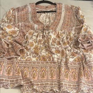 This Free People blouse features a relaxed fit with charming ruffled details and a stylish tie front.