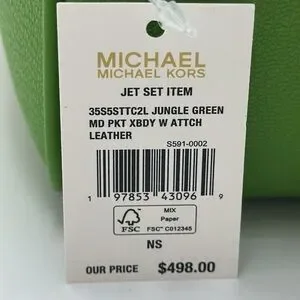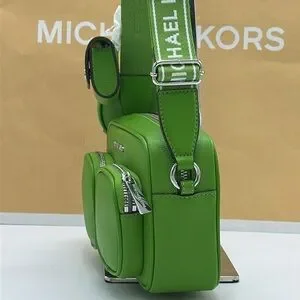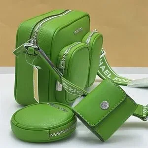 Stylish lime green crossbody set by Michael Kors. Features multiple pockets and adjustable strap.