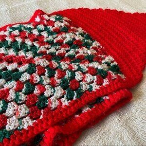 Classic red, green and white with a touch of silver sparkle yarn