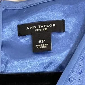 Ann Taylor dress, blue dress, eyelet dress, petite dress, nylon cotton blend, professional wear, A-line dress, size 8P, sleeveless, elegant dress, office wear, blue fashion, lightweight dress, zipper dress, eyelet, casual, date night, bridal shower, baby shower, girls weekend