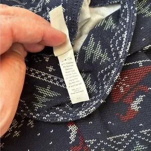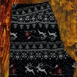This listing is for a pair of brand new leggings. These leggings have never been worn and are new without tags. The design features a Christmas cross stitch pattern on solid navy background. Perfect for the holidays. These leggings are size T/C, which means they fit sizes 12-18.