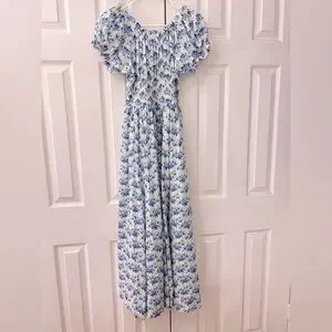 Doen Ashlynn Tie-detailed Shirred Floral dress, size S. US 2, new never worn.