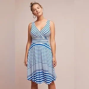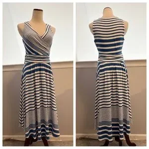 Anthropologie’s Kythira striped midi dress is so flattering and ready for any summer adventure! Wrap front with empire waist provides lots of stretch. Approximate measurements lying flat: bust 16”, waist 14”, shoulder to waist 17”, waist to hem 26”. In excellent condition with no visible wear or damage. Worn 2-3 times. Colors are best represented in pics #2-6. Please ask questions before purchase as all sales are final.